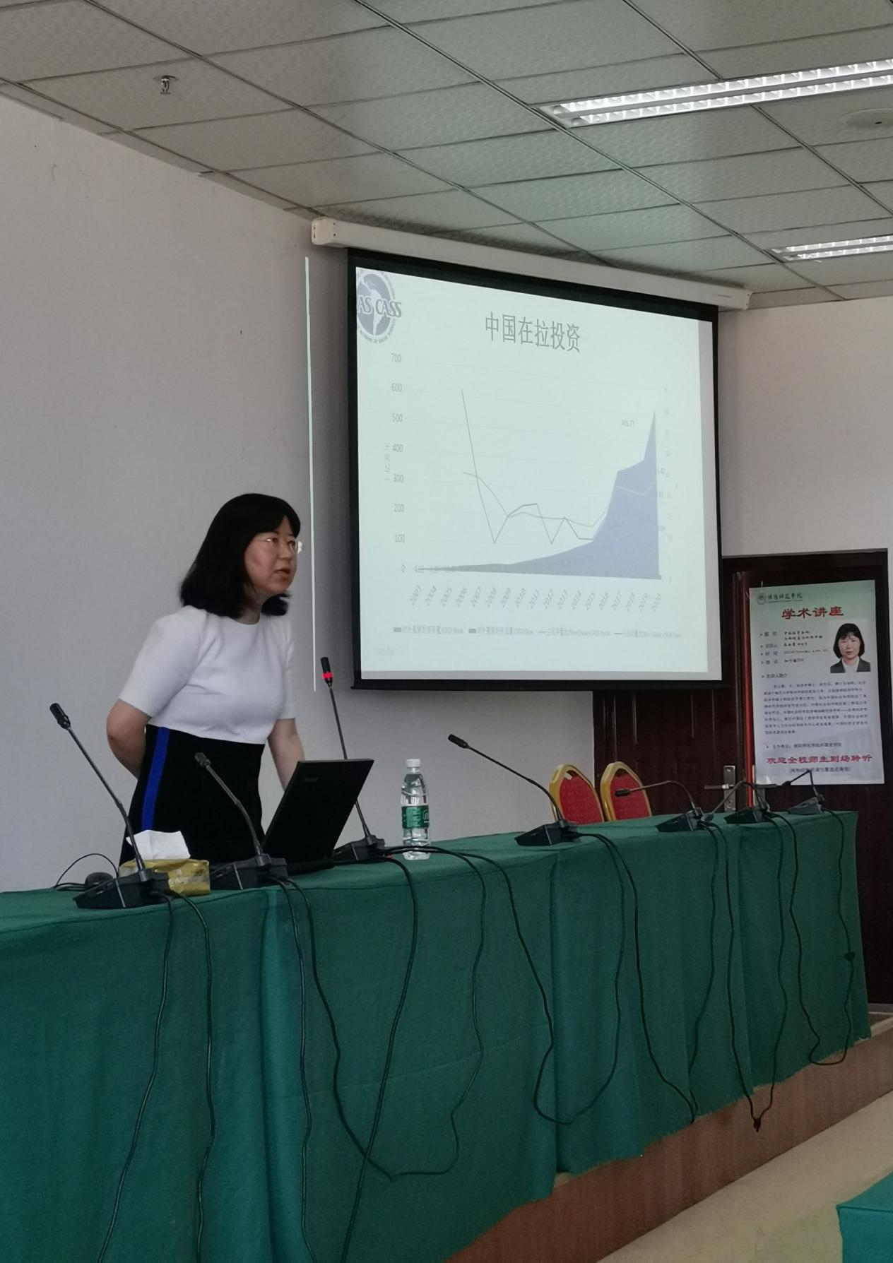 2022年7月6日,中国社会科学院拉美研究经济所研究室主任、博士生导师岳云霞应邀在我校知行楼914作学术报告,外国语学院及中国周边国家研究中心师生聆听报告。