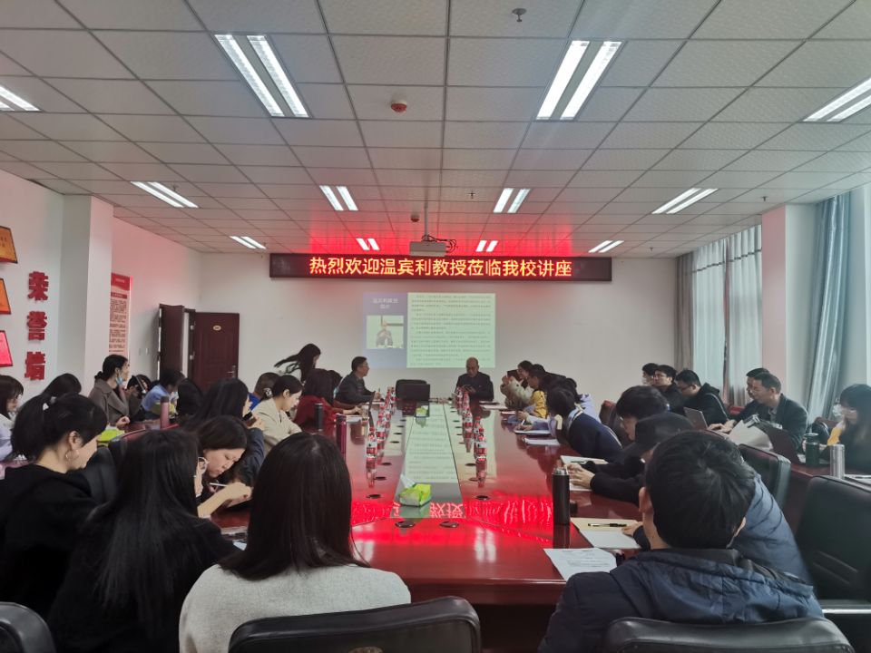 2023年3月15日下午,广东外语外贸大学博士生导师温宾利教授应我校邀请,在知行楼532举办了题为“论句型结构知识在英语学习中的重要性”学术讲座,外国语学院部分师生到场。